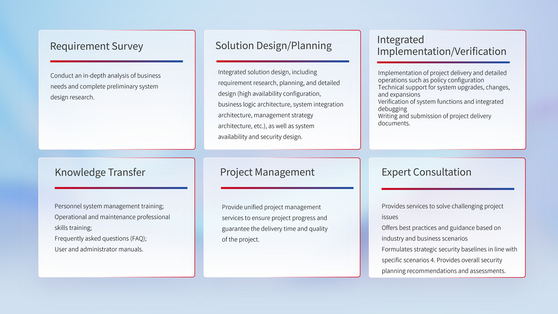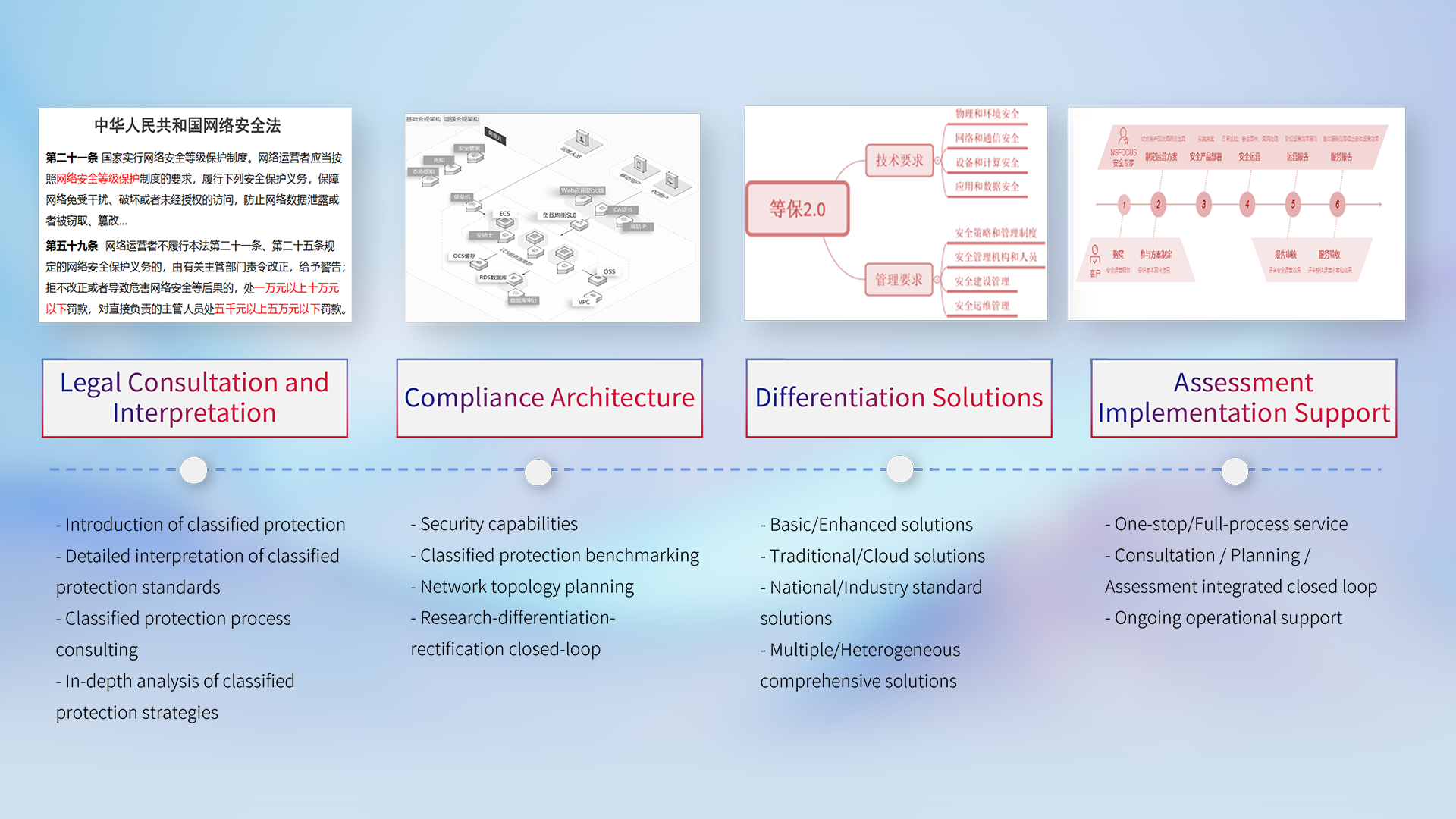 Authorized technical delivery and service qualifications from more than 50 mainstream security manufacturers at home and abroad, helping customers establish and improve the security protection of the information system with professional security services and leading security solutions.
